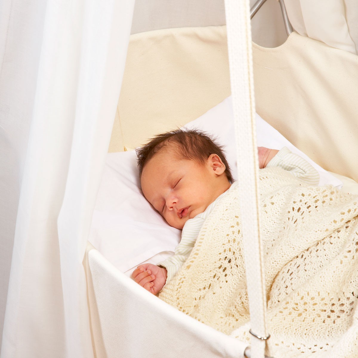 Die Leanderwiege wird an einem Schwerpunkt aufgehängt. So ist es möglich die Wiege ohne viel Kraftaufwand sanft zu bewegen. Das Baby kann bei diesem Modell die Wiege selbst in Schwingung versetzen. Zudem haben Eltern die Möglichkeit das Bettchen an einem Stativ zu platzieren oder einem Deckenhaken aufzuhängen. Der Abstand der Wiege zum Boden kann dabei einfach verstellt werden.
